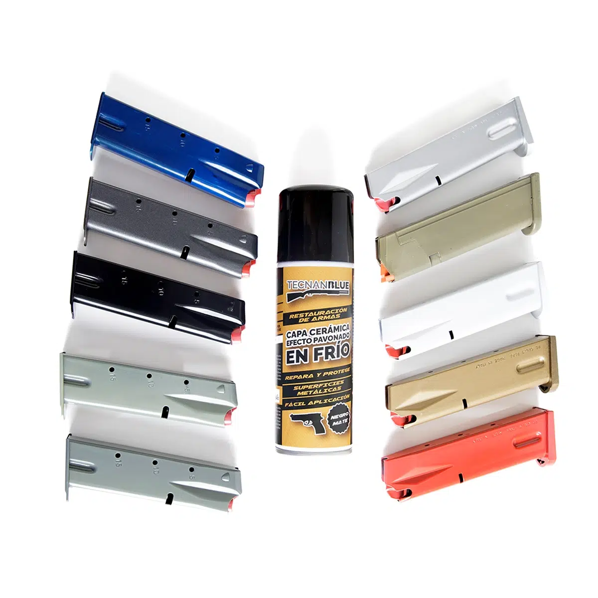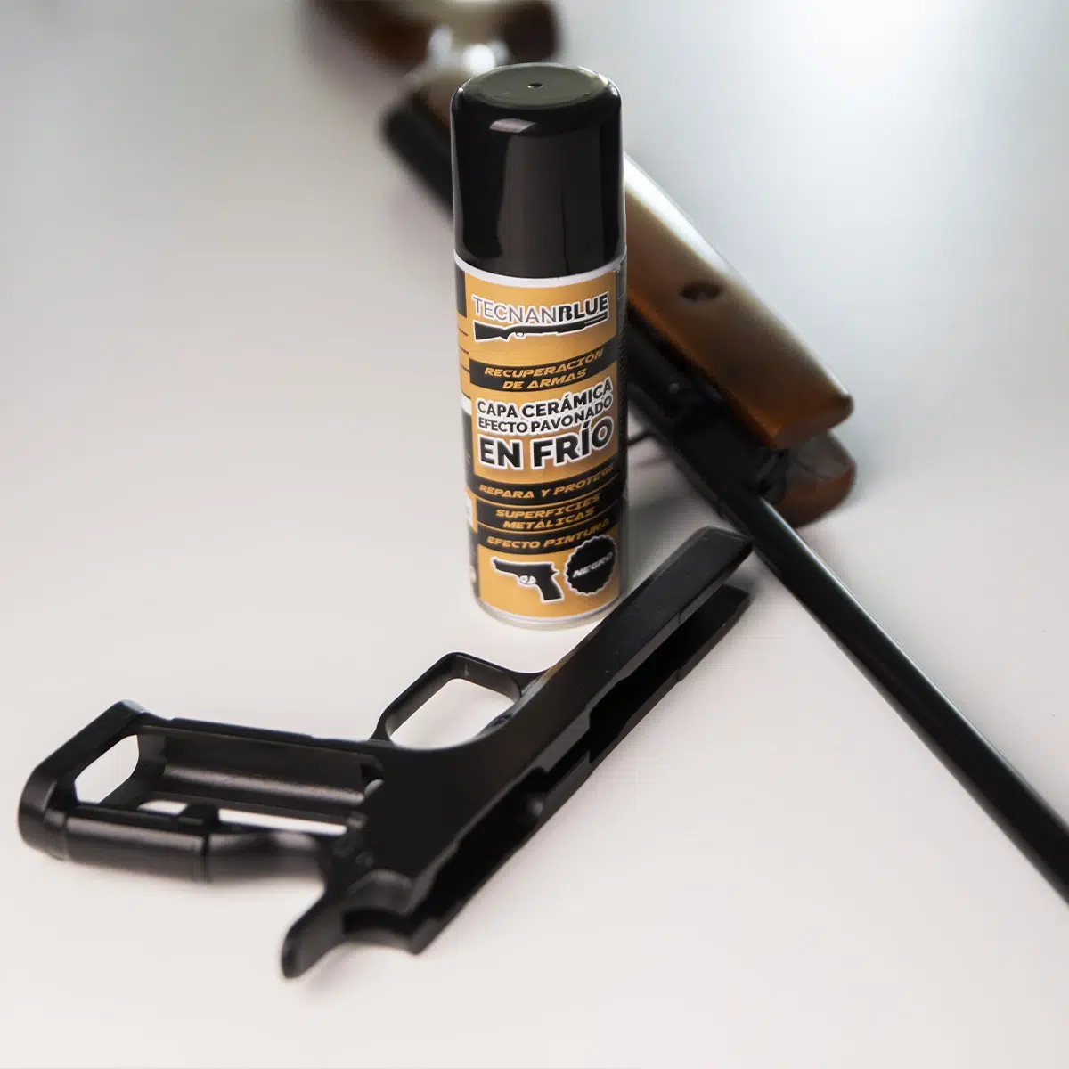 Il peut être appliqué directement sur les pièces métalliques des armes à feu : canon, culasse, corps, cylindre, etc. Il est compatible avec l’acier, l’aluminium, l’acier inoxydable et les alliages .