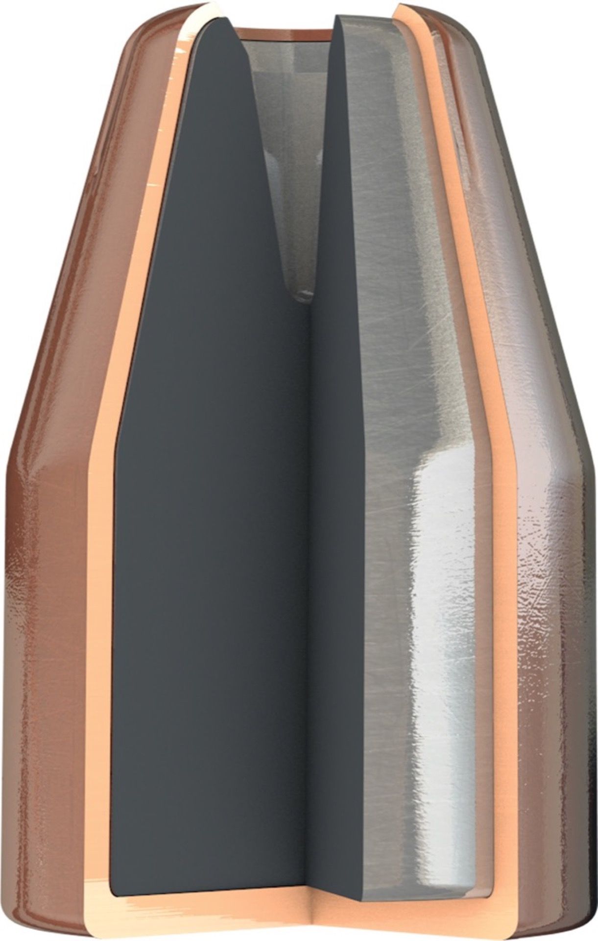 L’expansion est contrôlée par les différentes épaisseurs le long de la chemise, ce qui procure un avantage par rapport aux balles recouvertes d’une chemise avec épaisseur unique.