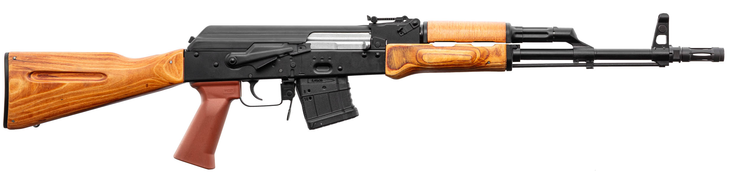 Mis en service en 1974 pour remplacer le 7.62×39 mm, le 5.45×39 est une munition conçue pour optimiser la stabilité en vol et limiter le recul. Très populaire dans les pays de l’Est, il est apprécié pour son comportement en tir dynamique et sa précision. Sur une plateforme AK bien réglée, ce calibre offre une excellente sensation de contrôle, même en cadence soutenue.
