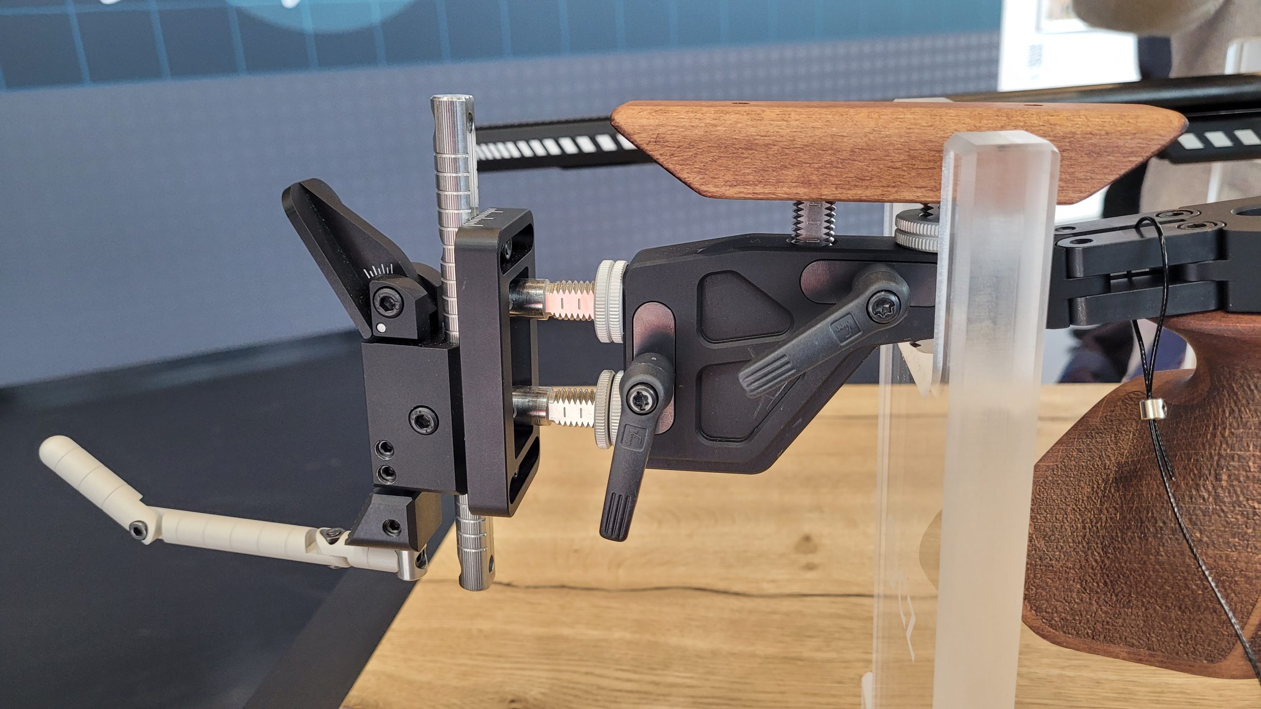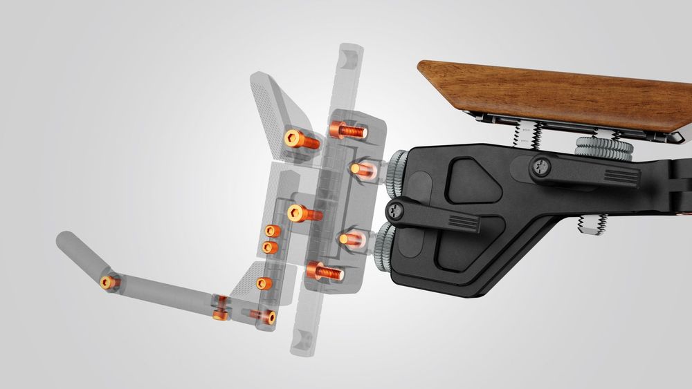 Dotée d’un châssis en aluminium anodisé compatible ISSF, co-développé avec le champion olympique Matt Emmons, elle offre une adaptabilité complète : poignée pistolet interchangeable (XS, S, M), appui-joue réglable sur trois axes, plaque de couche multi-réglable avec crochet d’épaule, et rehausse de fût ajustable.