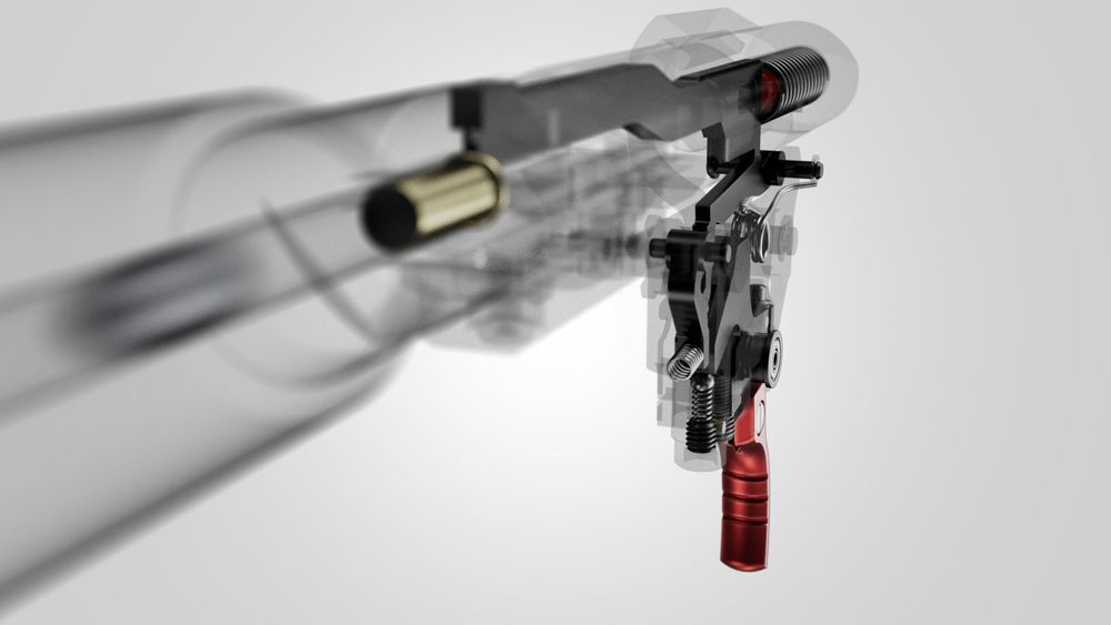 La détente Flyweight à deux temps, entièrement réglable, propose un poids de départ compris entre 0,9 et 1,8 N, avec un réglage usine d’environ 110 g.