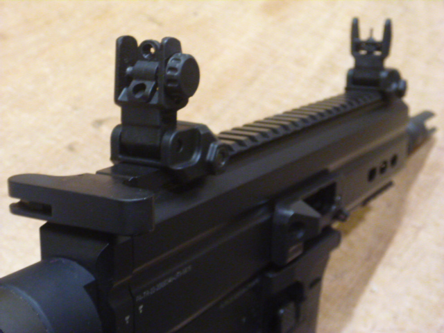 Arme livrée avec hausse et guidon de type AR15 amovible et rabattable, cache flamme, crosse télescopique multi positions, chargeur 10 coups type Glock 9mm.