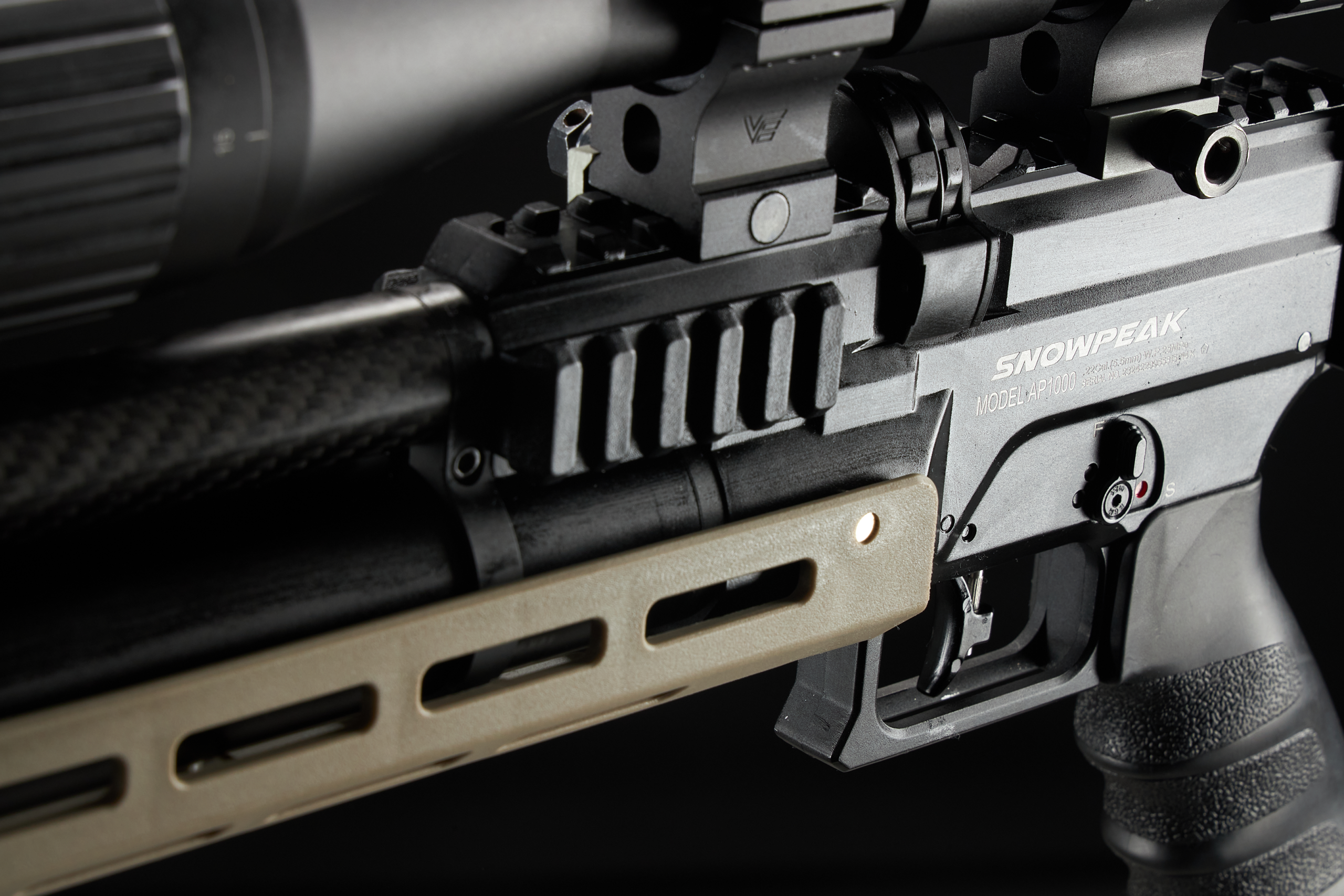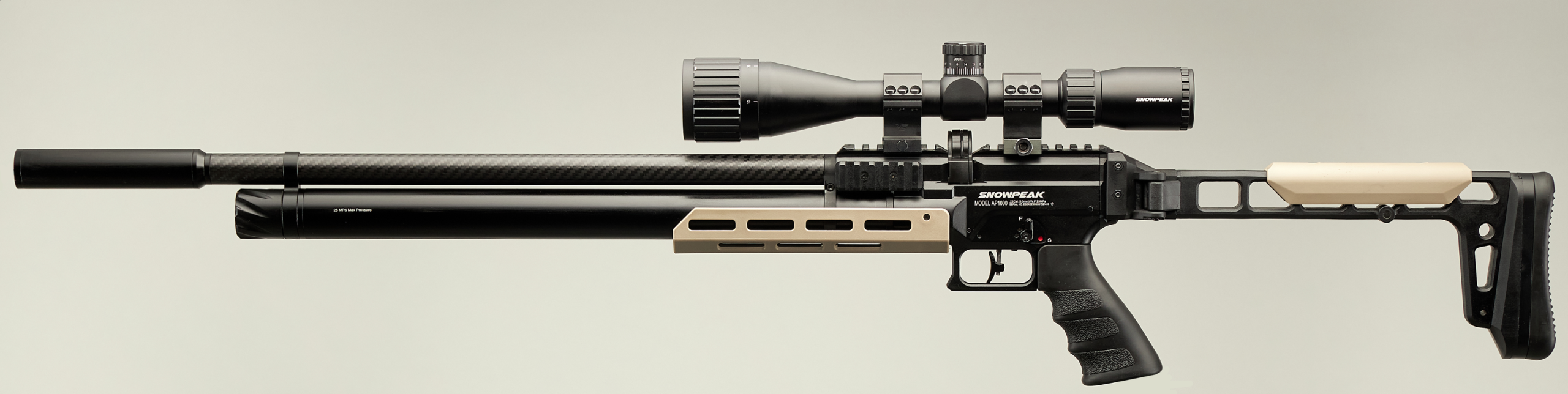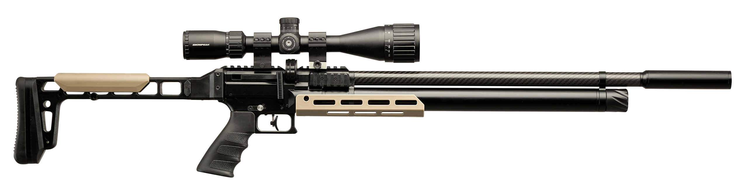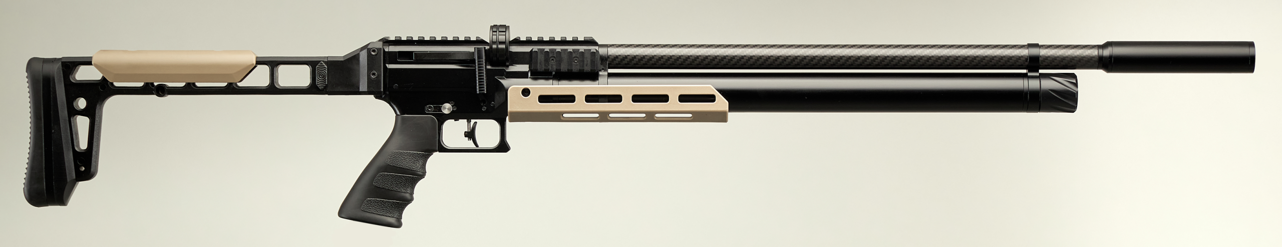 Carabine PCP culasse linéaire / Réarmement Manuel / Crosse Rabattable / Détente Réglable / Chargeur Rotatif / Modérateur de son / 3 Rails Picatinny (22mm) / Cylindre 250C