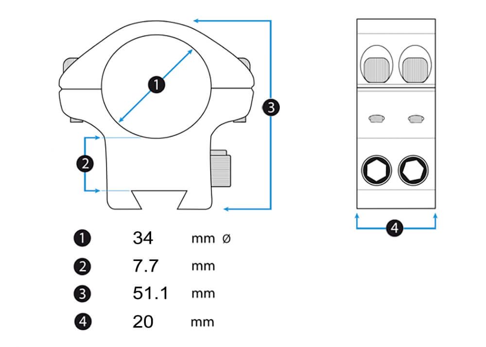 colliers ARKEN HALO Titanium 34 mm « BAS » Weaver/picatinny