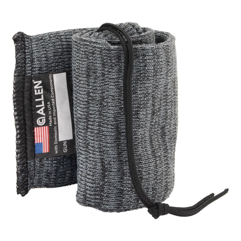 Cette chaussette Allen est fabriquée aux États-Unis et convient à la plupart des armes de poing jusqu’à 14 pouces. Le traitement limité en silicone pour une protection à court terme sur le tissu tricoté ne retient pas l’humidité. Elle protège votre arme non seulement de la rouille, de la saleté et des débris, mais aussi des dommages qu’elle peut subir lorsqu’elle est rangée dans votre coffre-fort ou votre étui à armes. La chaussette pour arme de poing comporte un cordon de serrage pour fixer la chaussette autour de l’arme.