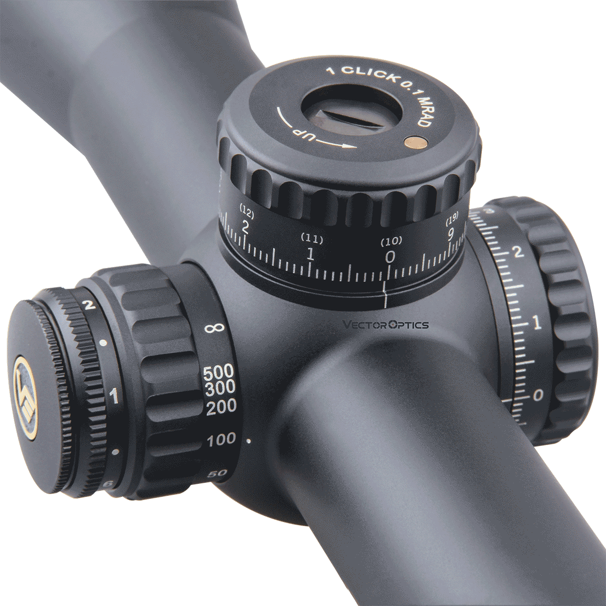 – Ajustement de 1/10MIL Zéro-Stop & Turret Lock, 100 clics par tour, 26MIL de plage d’élévation
