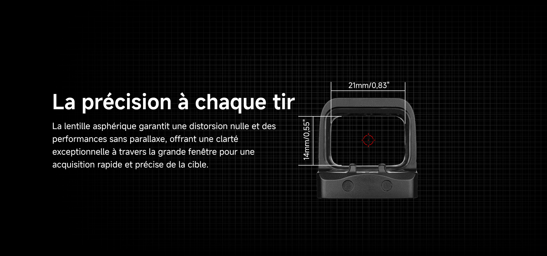 Le Osight S est une optique fermée compacte mais puissante, conçue pour le port dissimulé et les applications tactiques, améliorant votre précision et votre confiance à chaque instant. Il est doté d’un boîtier OAL™ exclusif et d’un couvercle de charge magnétique innovant avec un affichage intuitif du niveau de la batterie. Son système multiréticules polyvalent (point de 2 MOA, cercle de 32 MOA ou les deux) offre un tir de précision et une acquisition rapide de la cible. Il bénéficie d’une lentille asphérique pour une distorsion nulle et des performances sans parallaxe, d’une hauteur de pont ultra-faible pour une co-visée compatible avec la plupart des viseurs et d’une empreinte RMSc pour un montage direct sur les glissières prêtes à recevoir des optiques.