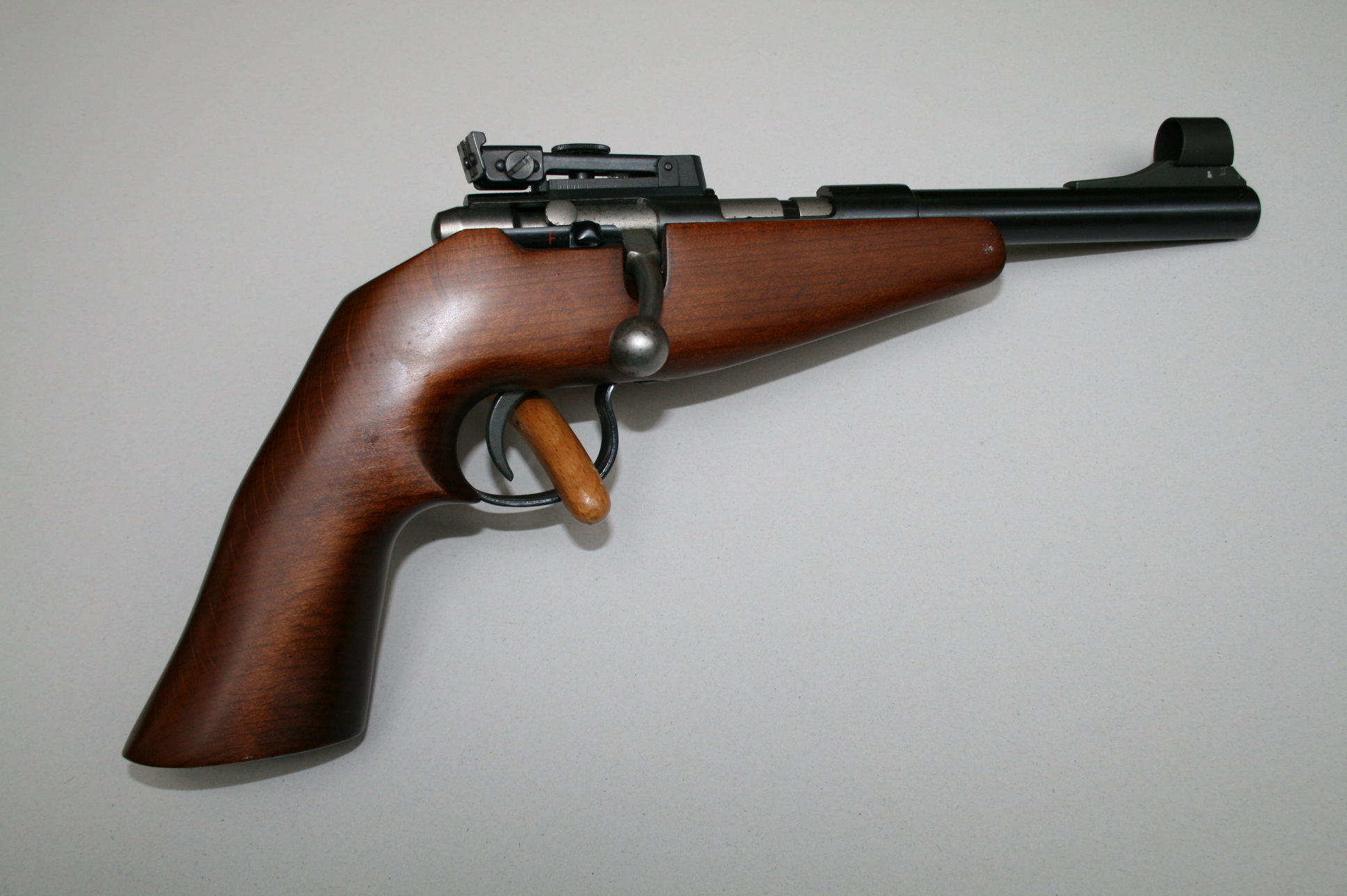 Pistolet à verrou mono-coup d’occasion, de la marque Anschutz, en calibre .22Lr.