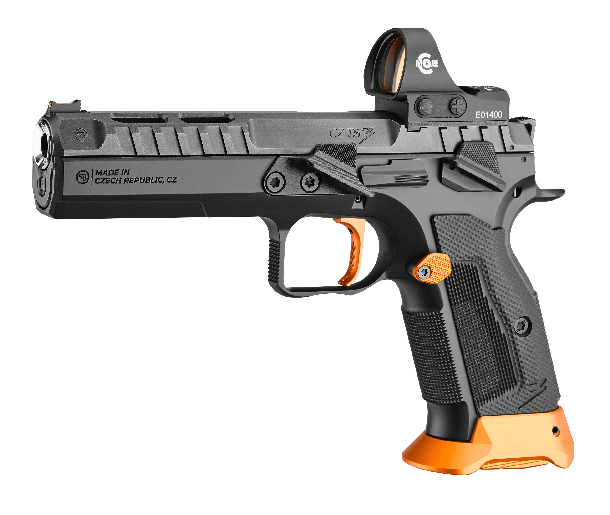 Le CZ TS 3 ORANGE est le modèle phare de la nouvelle série de pistolets de compétition CZ TS 3, conçu pour les divisions IPSC Optics et USPSA Limited Optics. Usiné avec précision et équipé d’un canon martelé à froid, il offre une précision exceptionnelle, une grande durabilité et une ergonomie optimisée pour la performance sportive. Compatible avec les empreintes d’optiques les plus courantes, il permet un montage direct sur la culasse sans plaque. Sa détente Single Action ultra-légère, sa carcasse en acier massif et ses composants optimisés en font une référence pour les tireurs exigeants.