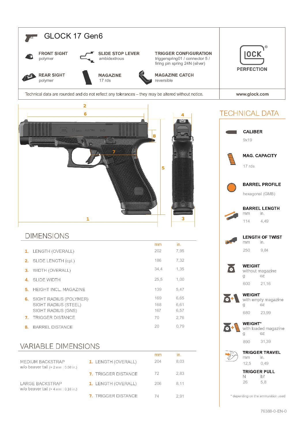 🔹 Tableau récapitulatif du Glock 17 Gen 6