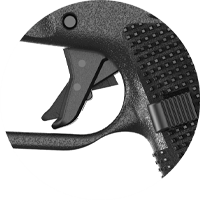 L’undercut retravaillé sous le pontet permet une prise plus haute sur l’arme, jusqu’à la queue de castor fixe, pour une stabilité accrue lors des tirs soutenus.