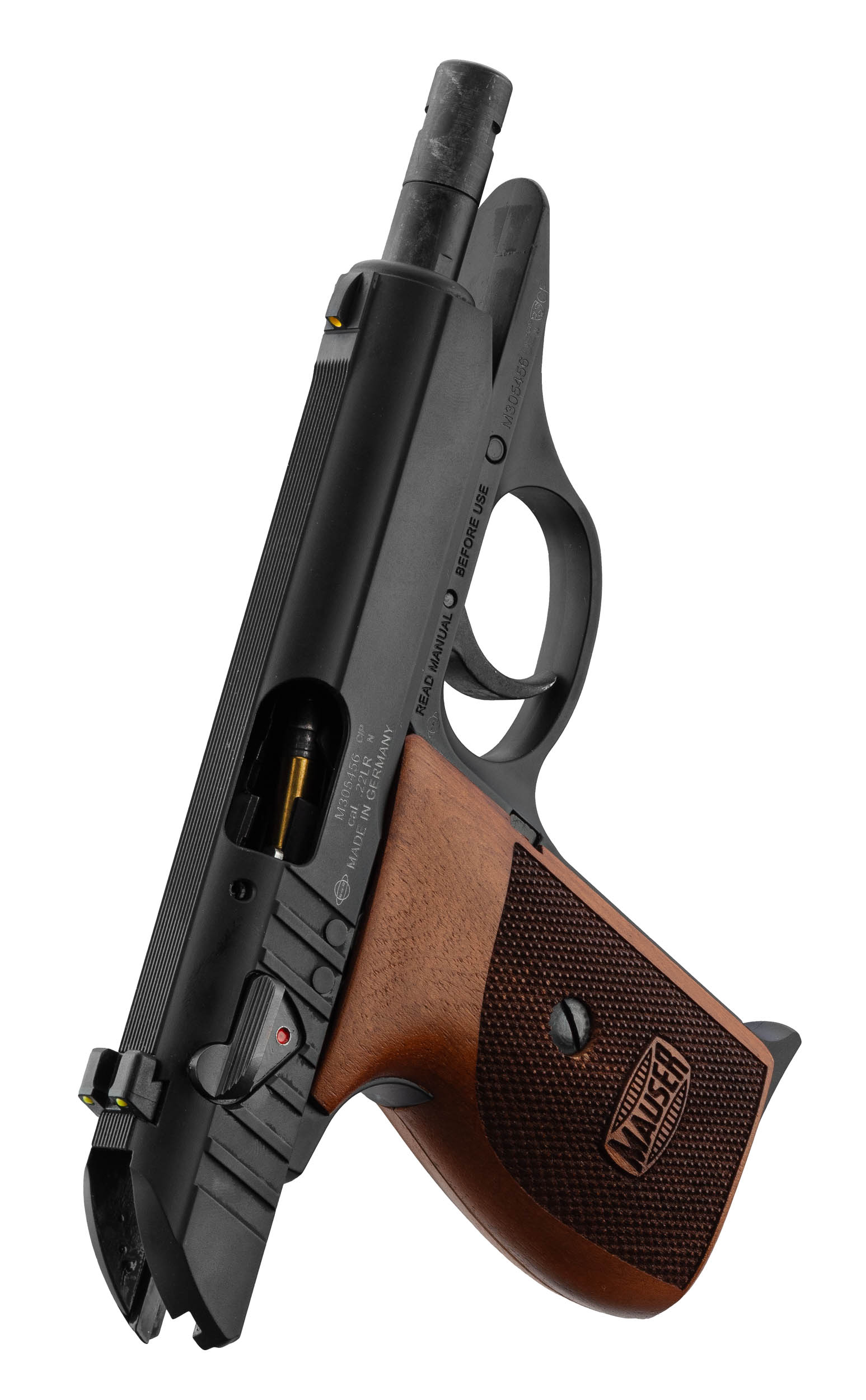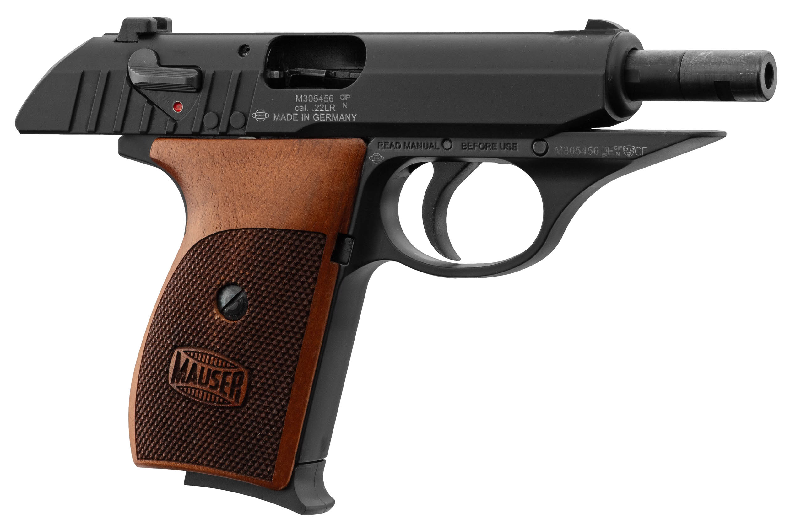 Le MAUSER PP7 en .22LR mise sur l’ergonomie et la précision, avec une finition soignée centrée sur ses plaquettes en bois.