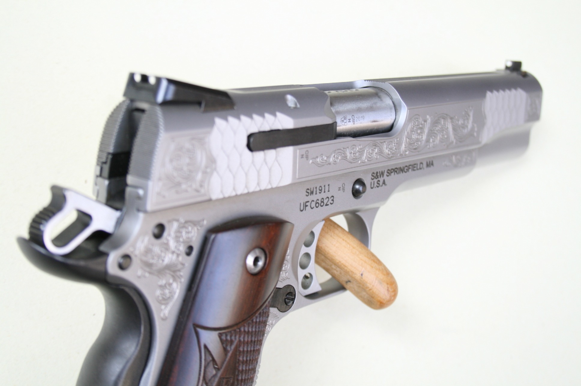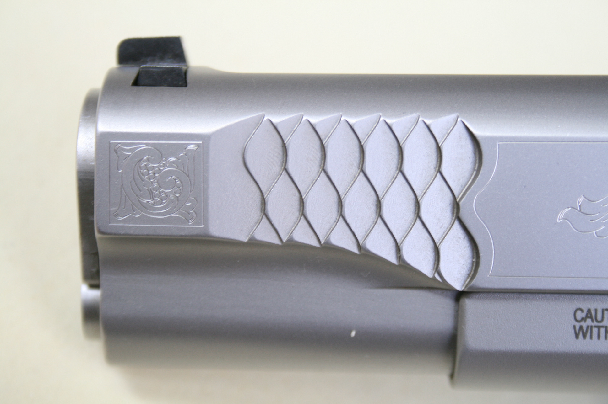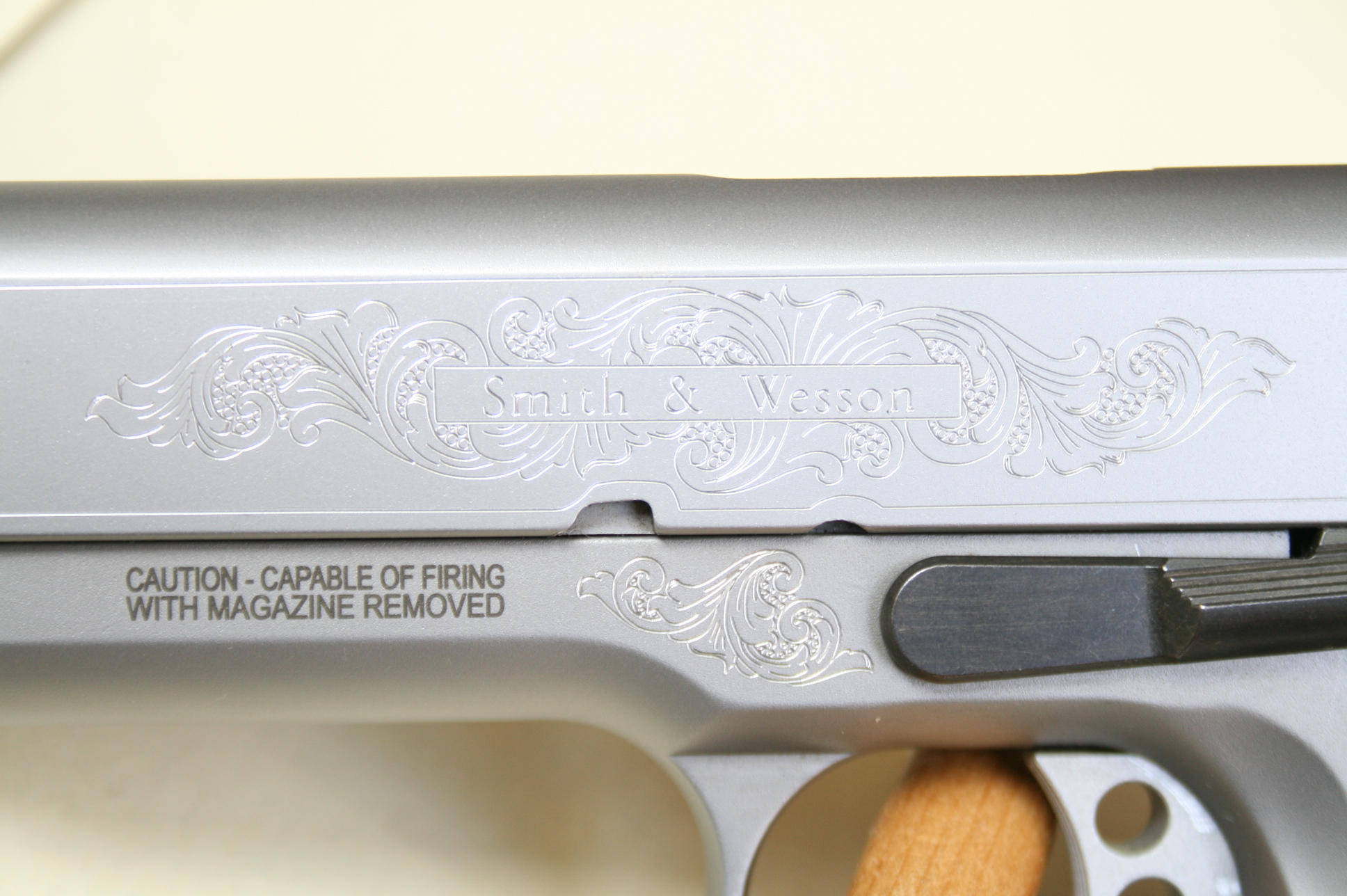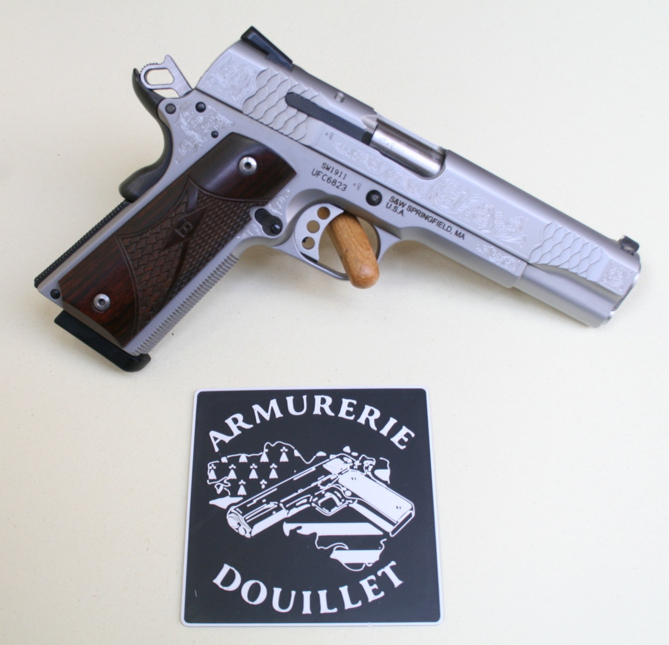 Pistolet d’occasion SMITH & WESSON1911 Machine Engraved, en calibre .45 ACP.
