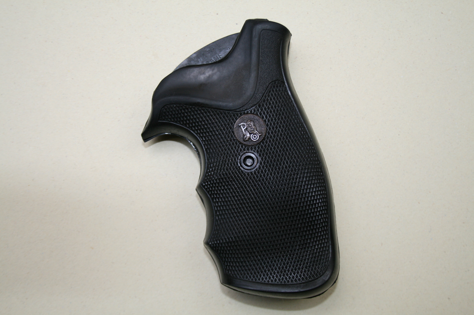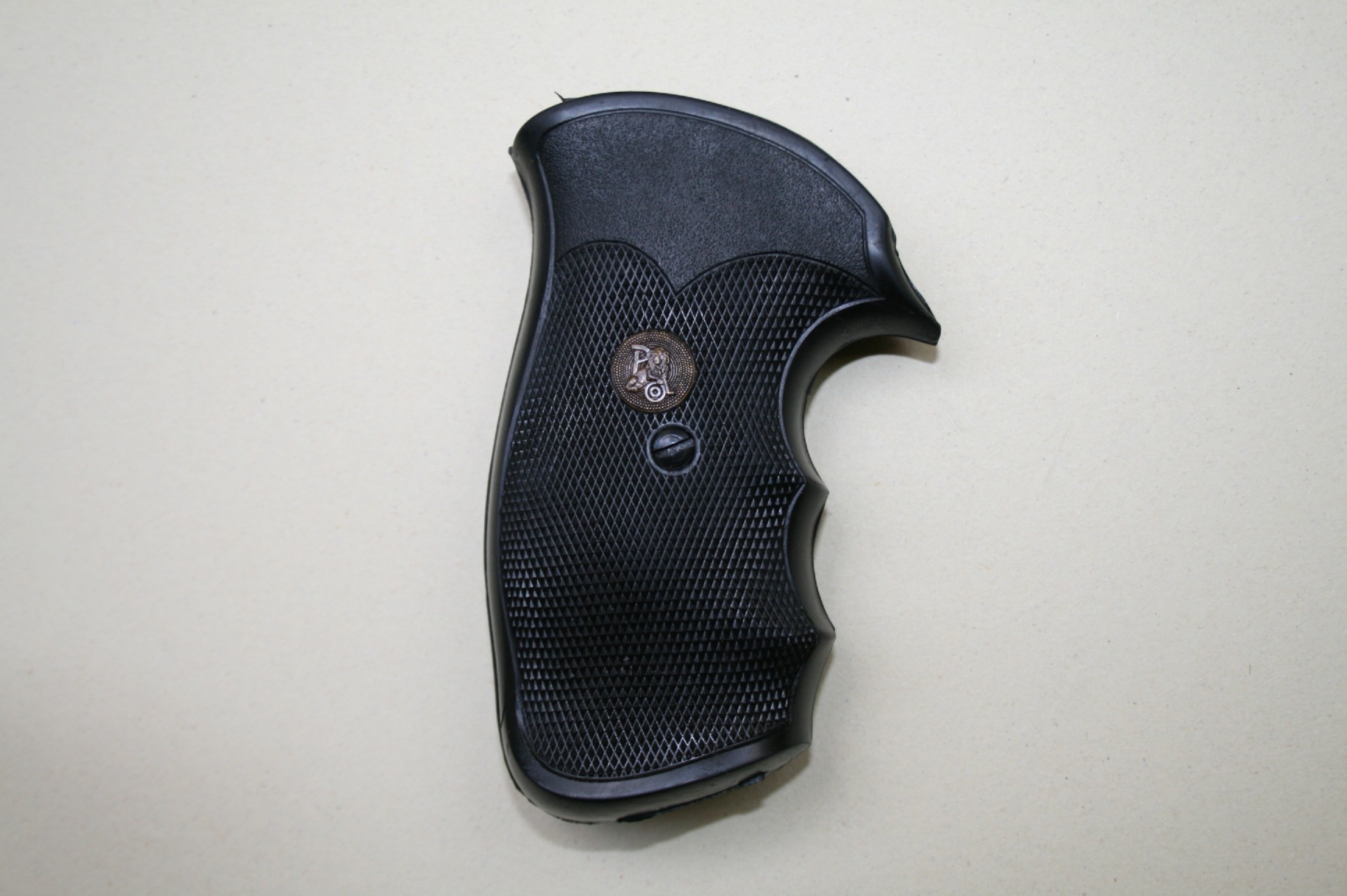 Poignée en caoutchouc GRIPPER d’occasion de la marque Pachmayr prévue pour un revolver Smith&Wesson doté d’une carcasse de type N, et d’un square butt.