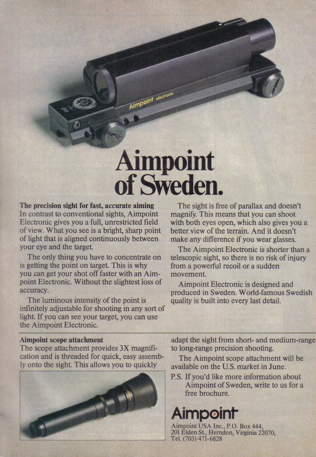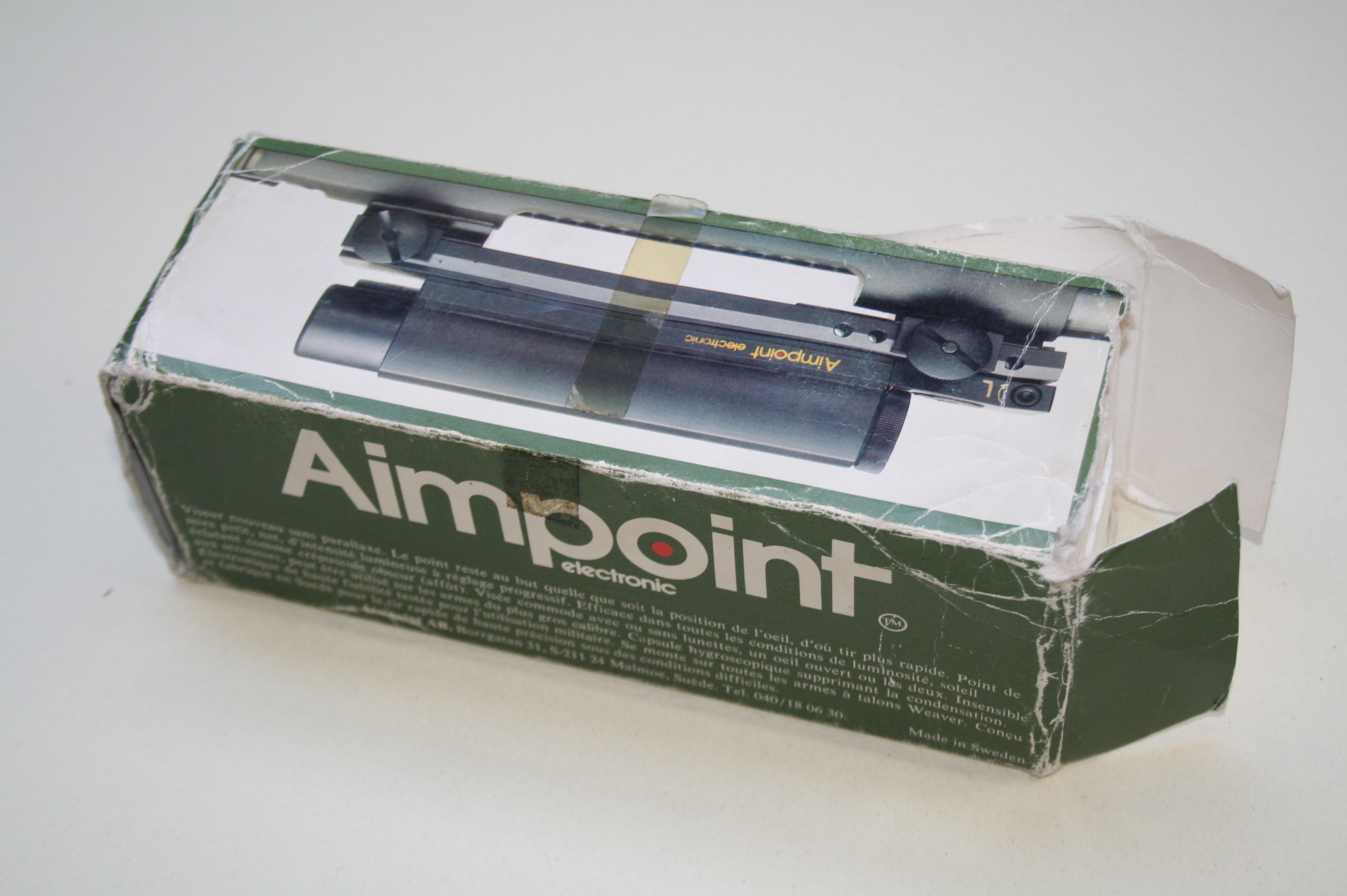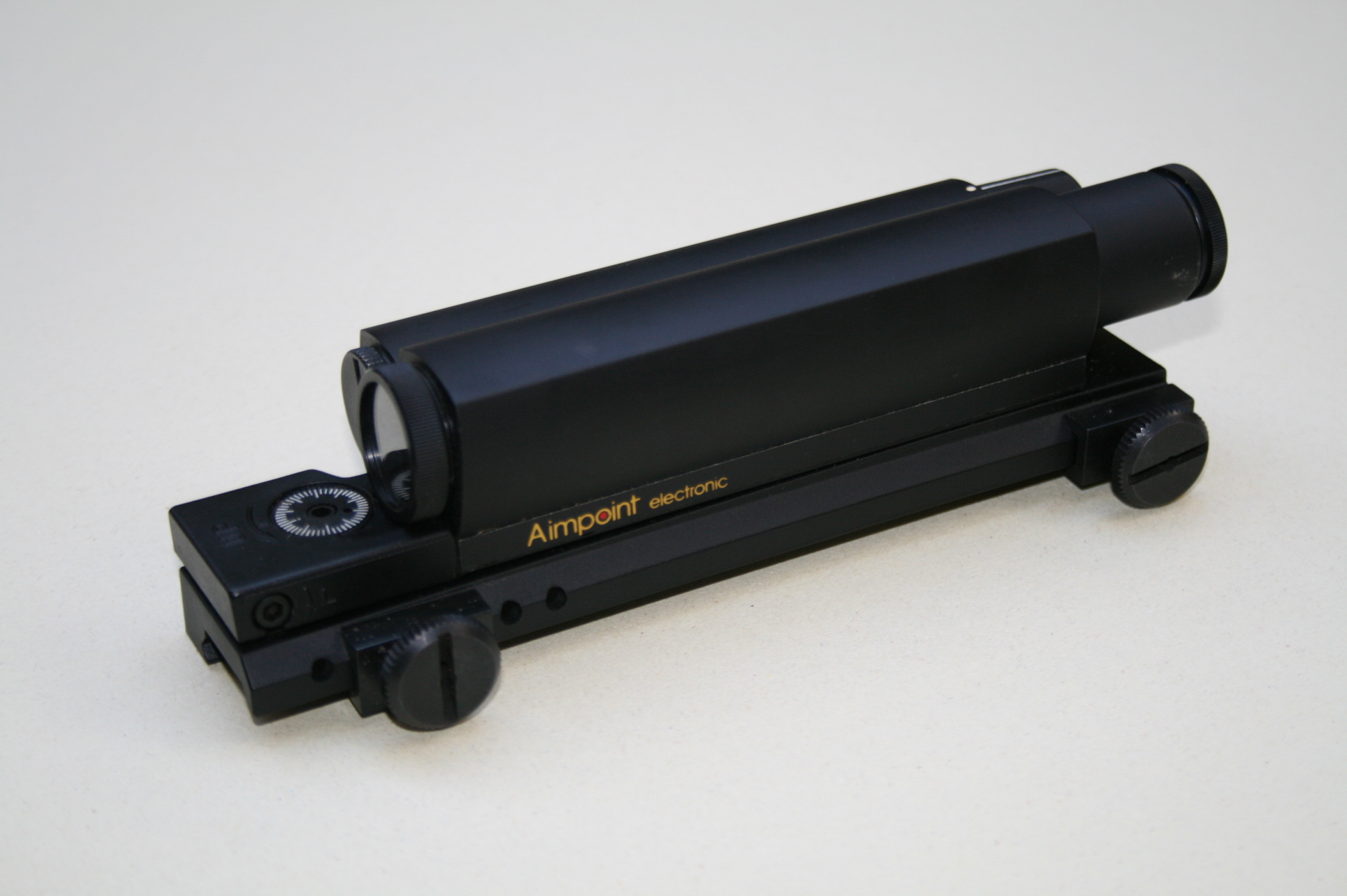 Exemplaire original d’Aimpoint Electronic G2, parmi les tous premiers produits par la marque, tout droit sorti des années 1980, une vraie rareté !