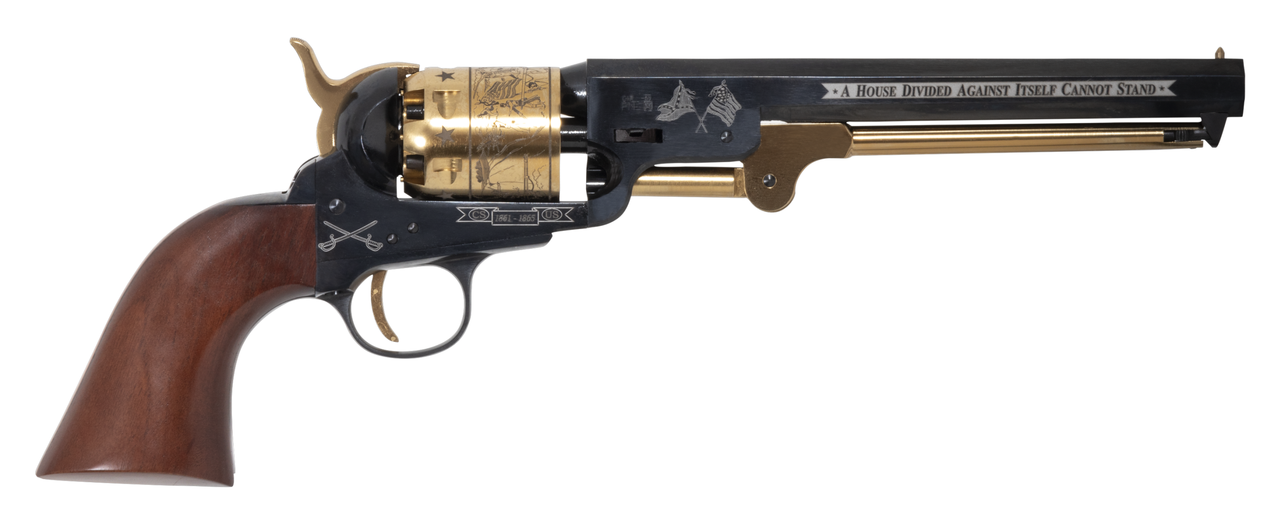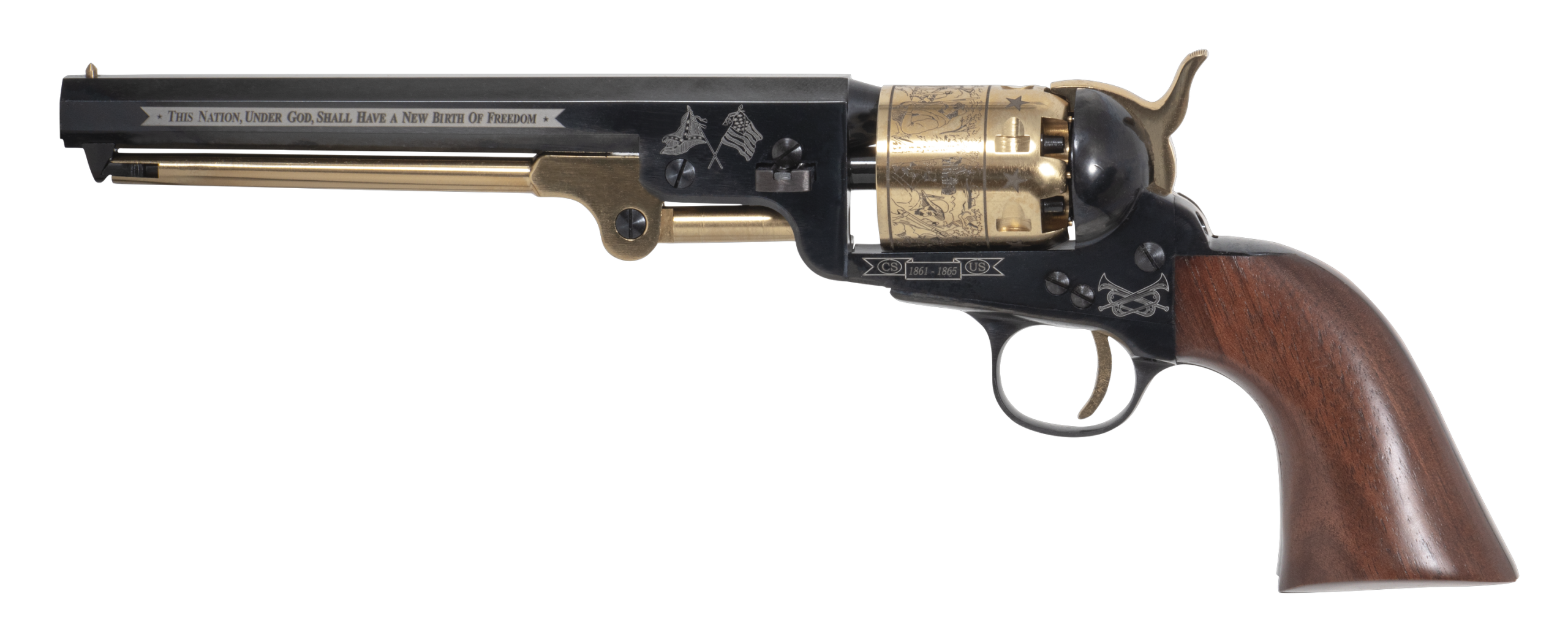 Réplique à poudre noire du Colt modèle 1851, commémoratif de la guerre de Sécession de 1861 à 1865 entre les confédérés et les unionistes.