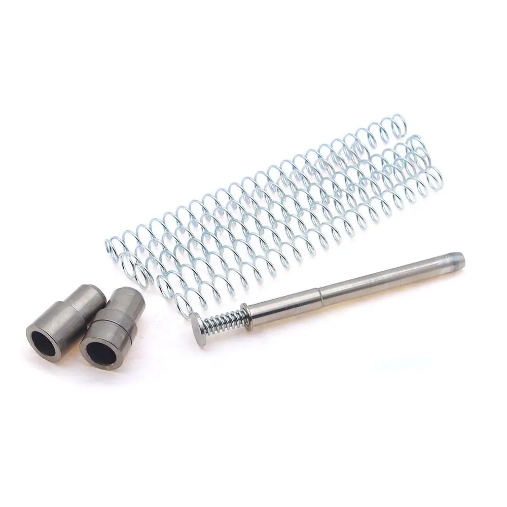 multiples Le système comprend trois ressorts ou plus de tailles différentes pour une compression spécifique, logés dans un tube métallique. Sa mission est de contrôler le mouvement arrière de la culasse au moment du tir de la balle. La pression initiale exercée par le système est presque identique à celle des ressorts d’usine standards. Cependant, lors de la phase finale de l’enroulement du système, la différence de pression exercée sur la glissière est de 80 % à 100 % supplémentaire, garantissant que la culasse ne percute jamais le châssis et éliminant les blocages.